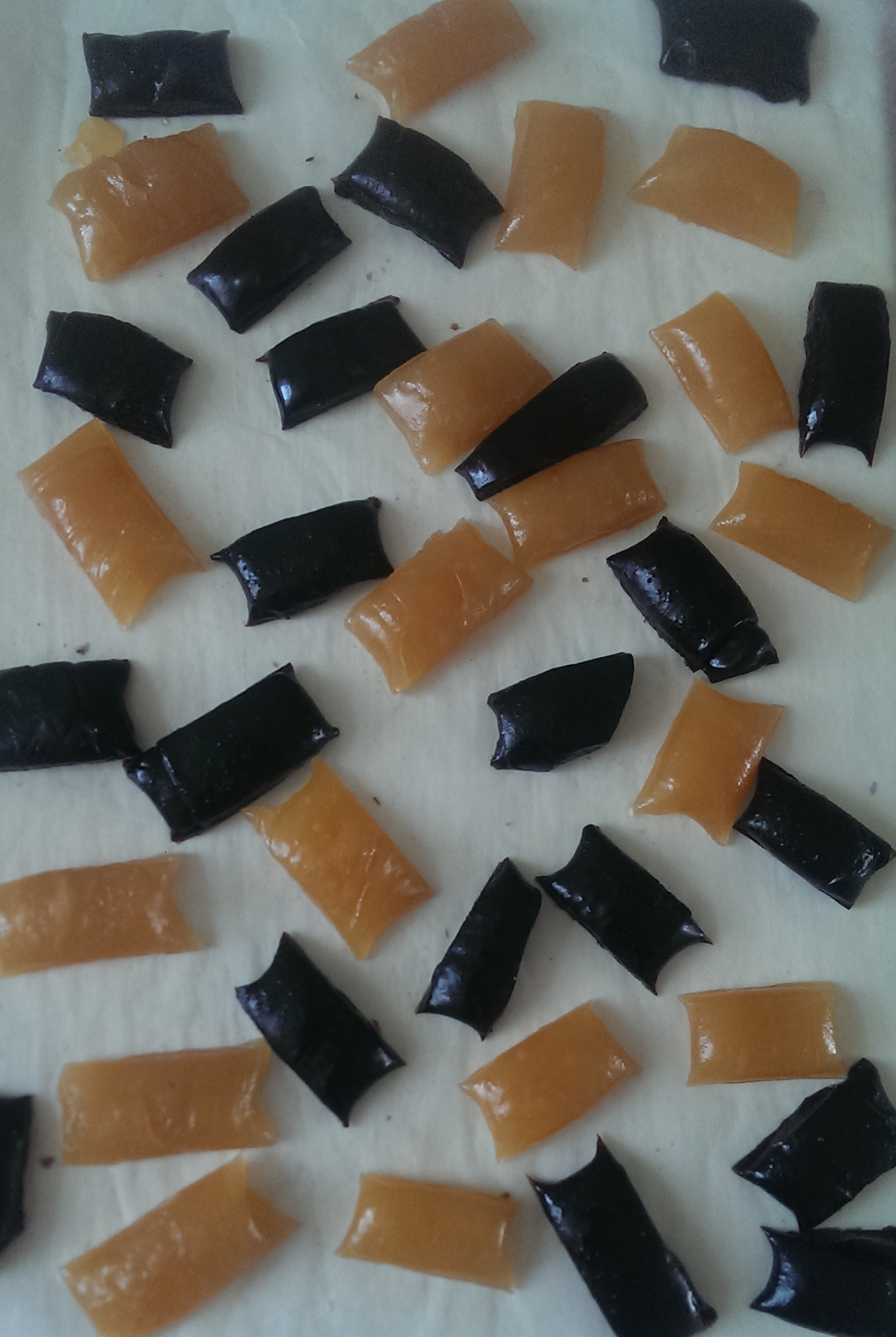 De Archiefkok maakte twee keer babbelaars (of eigenlijk vijf keer als u de mislukte pogingen per se wilt meerekenen) en gebruikte eerst bruine en toen witte suiker. Dat had veel invloed op het uiterlijk. Die met bruine suiker werden glanzend zwart, die met witte suiker waren echt boterbabbelaargeel.