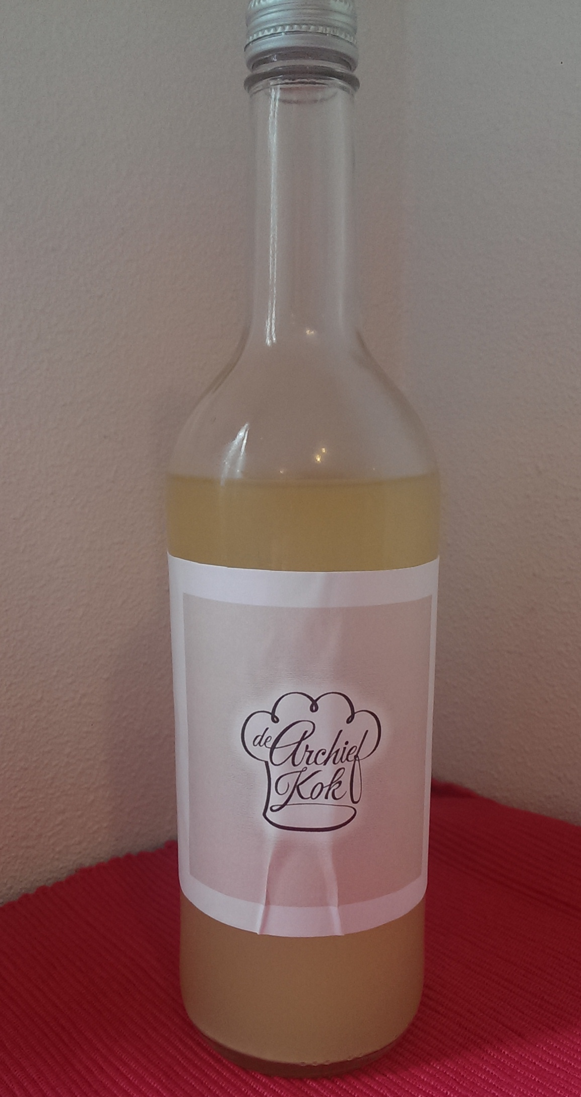 De tweede versie, volgens bovenstaand recept, rook en smaakte wel naar gember, zonder dat deze te overheersend was. Ook de citroen was goed te proeven en de koolzuurbubbels waren precies goed. Kortom, een bijzonder geslaagd drankje. Dat vond ook de jury die deze smaak vooral associeerde met de zomer en zichzelf al in de zon op een fijn terras zag zitten met een lichte dronkenschap in het vooruitzicht. Of u er ook dronken van kunt worden, is niet getest. Daarvoor was er te weinig en het alcoholgehalte is niet gemeten. Maar daar kan verandering in komen, want uw Archiefkok zint nu op hele grote pannen om net als Sara 28 flessen tegelijk te kunnen maken. Proost!