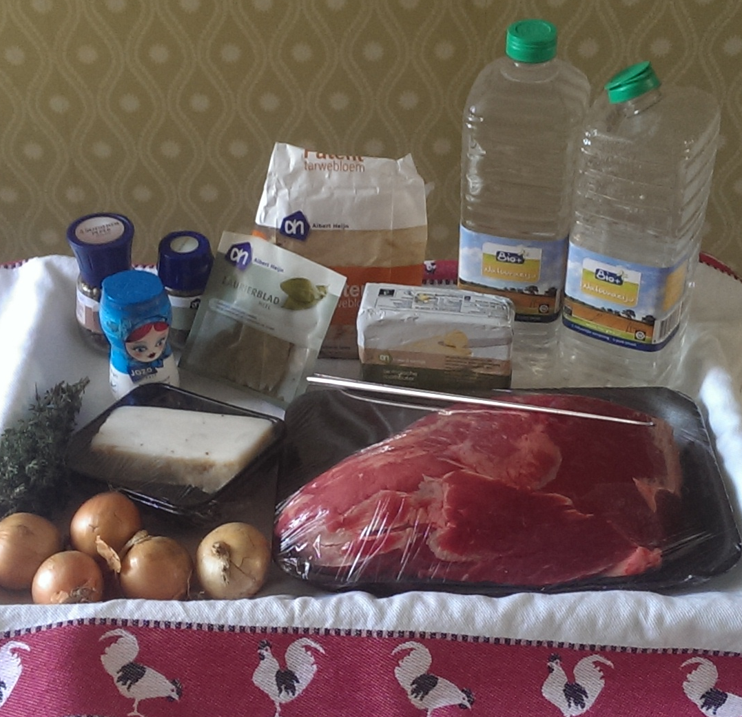 Dit recept staat heel ver af van hoe ik zelf stoofvlees maak. En, om vast een tipje van de sluier op te lichten, mijn eigen methode levert een smakelijker resultaat op dan deze boeuf a la mode. Daarom ga ik u ook niet uitleggen hoe u dit maakt. Ik ga het recept van Maarten hier letter voor letter overnemen, met tussen haakjes hoe u het (misschien beter) kunt aanpakken.