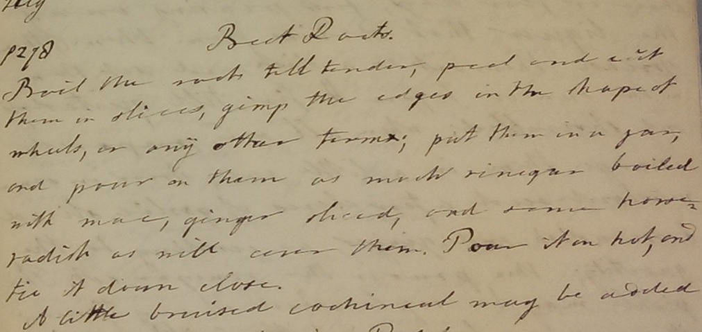 Sinds wanneer we de cochenilleluis aan ons eten zijn gaan toevoegen, is uw Archiefkok helaas niet bekend. Tot nu toe ben ik de vermelding ervan maar één keer tegengekomen en wel in het in het kookboek van de avontuurlijke Petronella Wilhelmina van der Linden-Heyligers (1783-1856). Zij had een grote belangstelling voor de Nieuwe Wereld, maar in dit geval stond de schildluis in een onschuldig Engelstalig recept voor pickled beetroot. We kunnen dan ook aannemen dat in de negentiende eeuw de schildluis een geaccepteerd onderdeel van het westerse voedingspatroon was geworden.