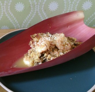 De presentatie van dit gerecht schept hoge verwachtingen. Gelukkig doet de smaak daar recht aan. Karrie van piesan bloemen is een heerlijke garnalencurry. De peper en uien maken het een beetje pittig, de kokos zorgt voor het zoet en de garnalen waren perfect gaar. En de bananenbloem dan? Ja, daar legt u toch even de vinger op de zere plek. Die is niet vies, maar helaas ook niet heel bijzonder. Misschien gebruikte ik toch een blaadje te veel van de buitenkant en sneed ik de bladeren te grof, waardoor het een beetje taai werd. Maar ook over de smaak valt weinig te zeggen. Die viel eigenlijk volledig weg in de curry. Dan gaat een archiefkok zich toch afvragen of dit de moord op een hele tros bananen waard is.