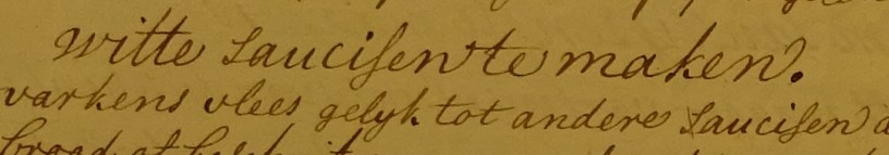 Of Agatha er zelf gewoond heeft, heb ik niet kunnen vaststellen. Zeker is in elk geval dat zij nooit hertrouwd is en dat haar kookboek uit 1724 in het archief van kasteel Waardenburg is achtergebleven. Eén van de recepten in dat kookboek is voor witte saucisen: saucijsjes die eerst in heet water worden gegaard en daarna worden gebraden. Eindelijk een excuus voor uw Archiefkok om de vleesmolen weer eens tevoorschijn te halen.