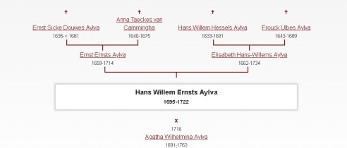 Ook Agatha Wilhelmina van Aylva, in wier kookboek uw Archiefkok onlangs wat zat te neuzen, moest er in 1716 aan geloven. Zij trouwde met Hans Willem, de kleinzoon van haar vaders oudere zuster. In haar directe bloedlijn kwamen nog weinig van zulke familiehuwelijken voor. Heel anders was dat bij haar man. Zowel zijn ouders als grootouders waren achterneef en –nicht. Zijn beide opa’s stamden bovendien af van dezelfde voorvader.