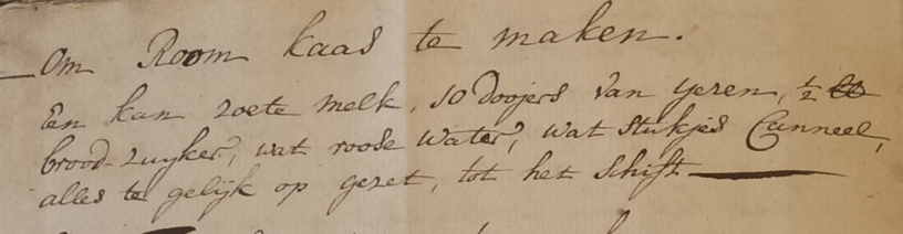 De archiefkok vond een recept voor seed cake in het kookboekje van Catharina Schimmelpenninck (1790-1842). Zij bracht een aantal jaren van haar leven door in Londen waar haar man, Salomon Dedel, buitengewoon gezant en gevolmachtigd minister was. Voor haar moet de cake nieuw geweest zijn en in ieder geval smakelijk genoeg om achter het recept aan te gaan.