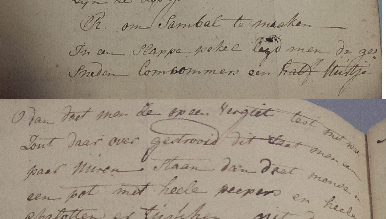 Als het half gaar is neemt men wat blom en boter daar men uijen in fruijt en daar bij gedaan dat eerst het vet en alles af is geligt